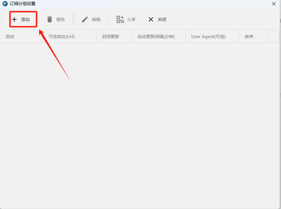 在 【订阅分组设置】窗口中点击【添加】按钮,如下图: